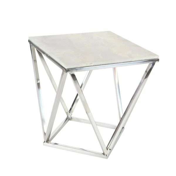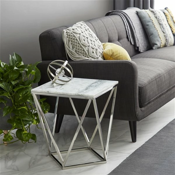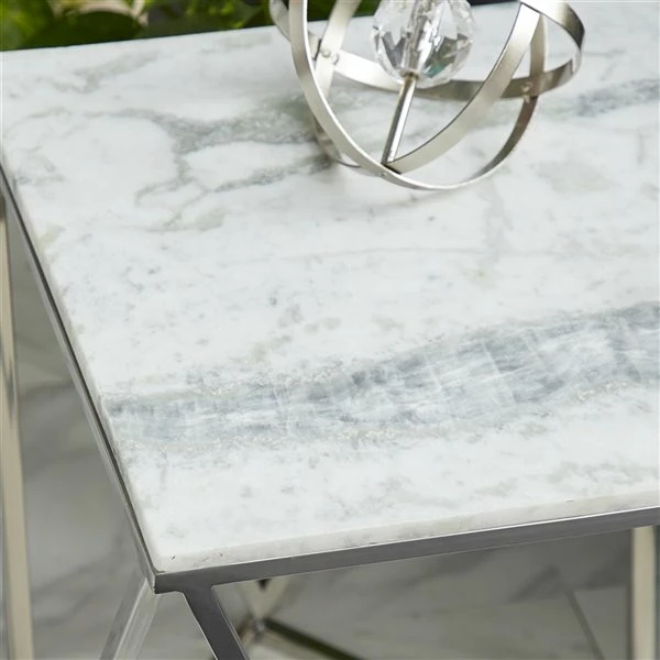 - This silver accent table brings together marble and stainless steel for an attractive design