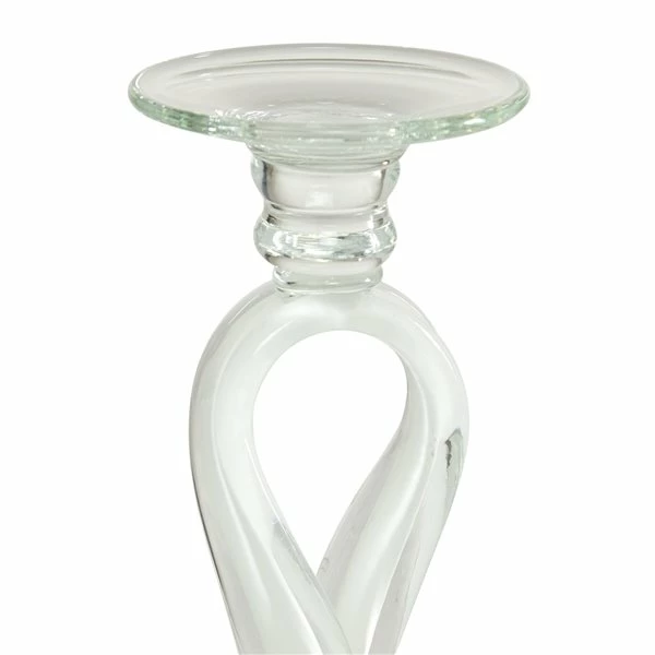 - Features clear looped ribbonlike glass with semi-opaque strands