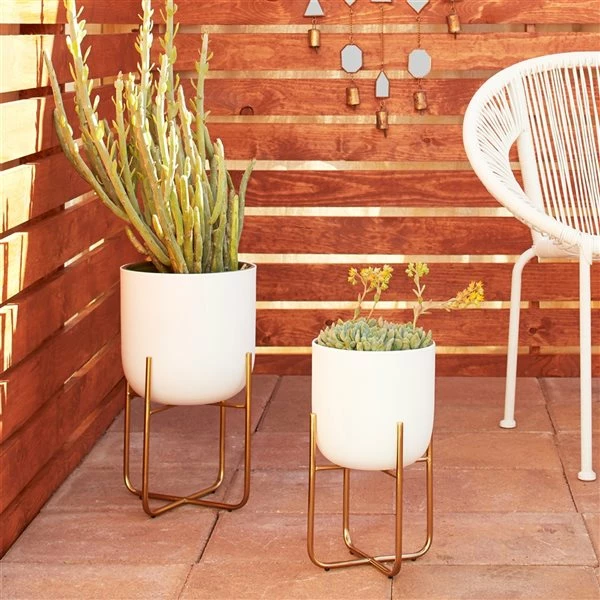 - White planters and gold stands