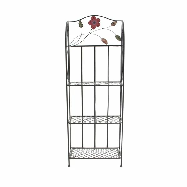 - Serpentine silhouette with metal flower sculptures and 4 metal grid rack shelves