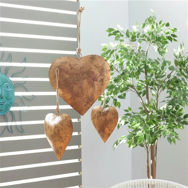 New ๐ Grayson Laneย 20-in Rustic Gold Metal Heart-Shaped Wind Chime – Set of 3 ๐