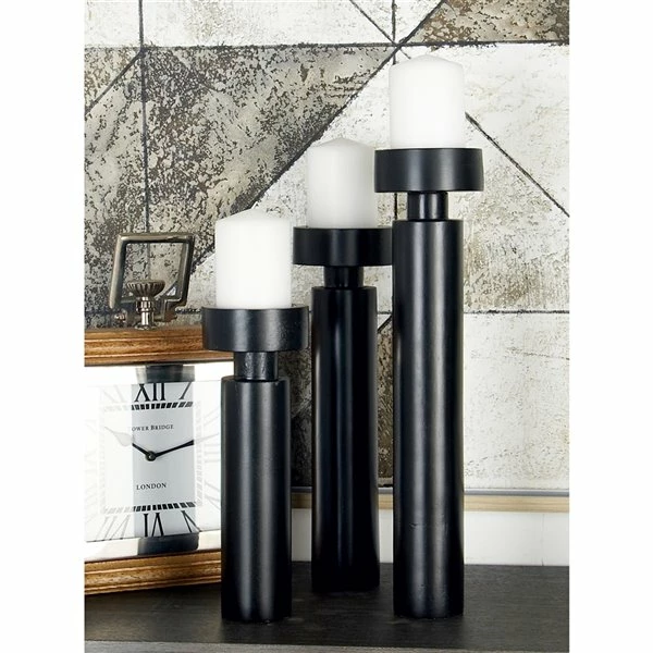 - This wooden set of candle holders are ideal for both dark and light-toned spaces. Modern style inspired with a minimalist design