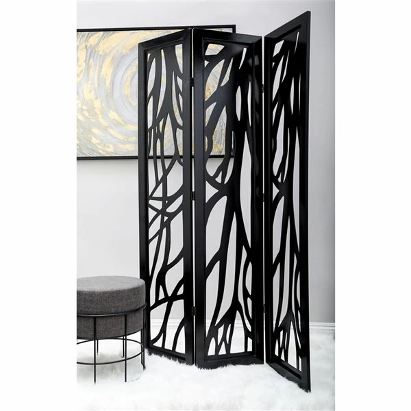 New ⌛ Grayson Lane 3-Panel Black Wood Folding Eclectic Style Room Divider 🔔