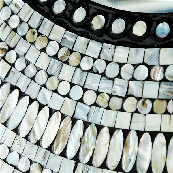 - Round wall mirror with layers of natural opalescent pearl mussel shells, round reflective interior mirror