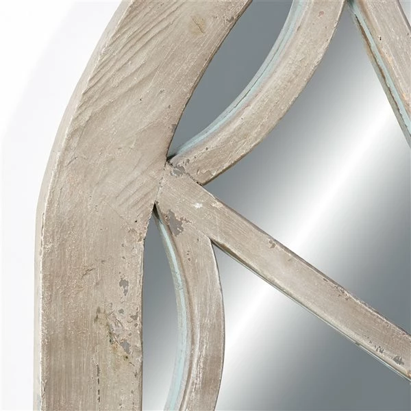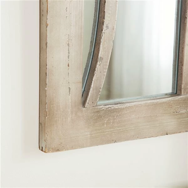 - Cathedral window mirror with wheat beige-coloured fir wood and a distressed antique finish