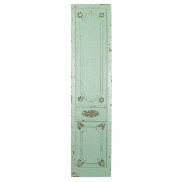 - Features an old cabinet door in a tall rectangular profile