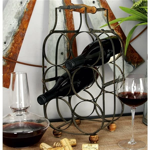 - Vintage upright rack holds 6 bottles and has a handle for extra strength