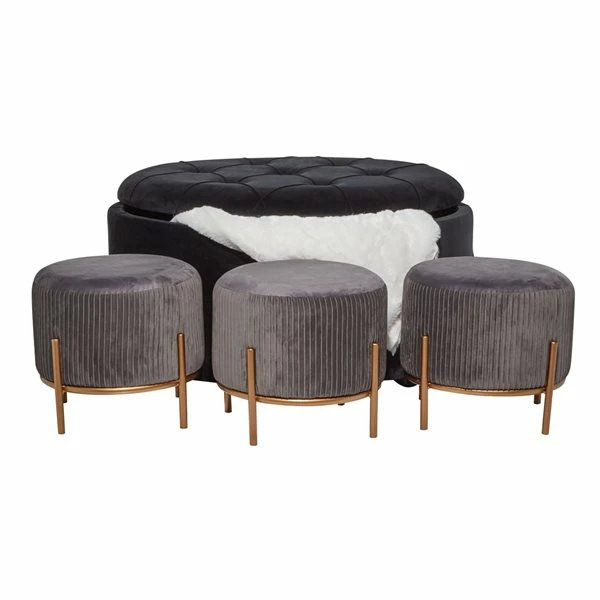 - A 4-piece ottoman features a matte black and grey colour with gold legs