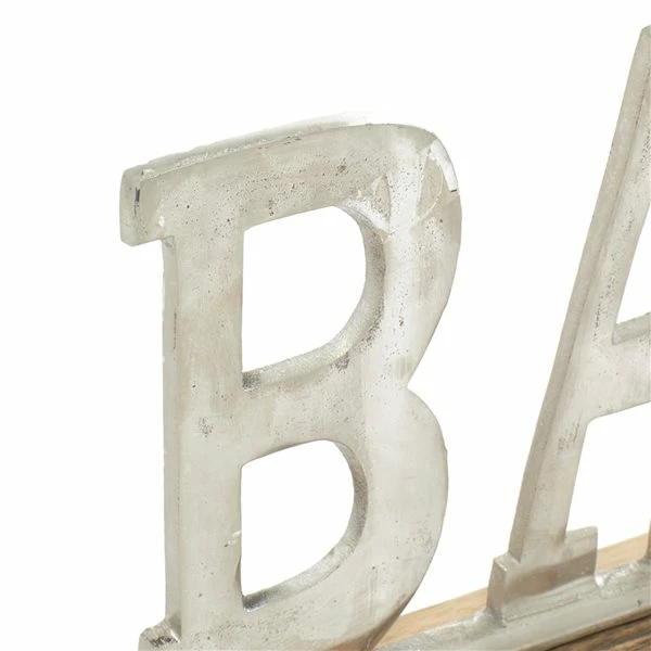 - Features small-sized, aluminum letter cut-outs of the word Bar