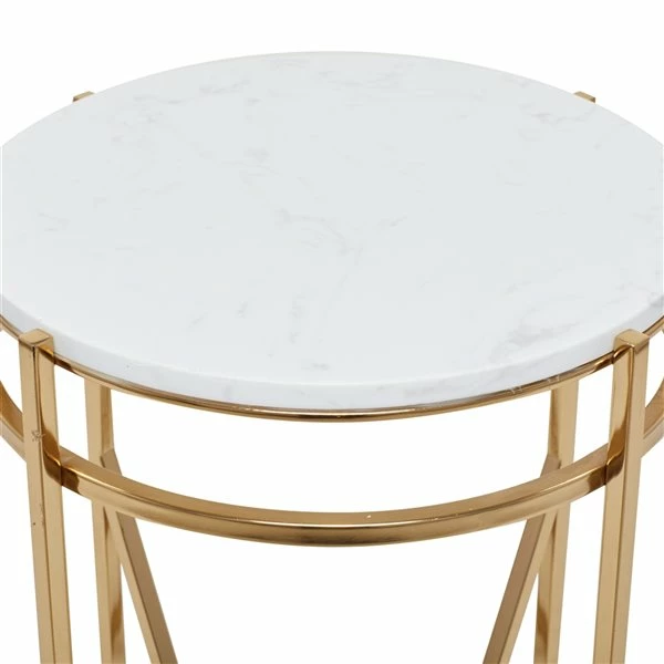 - A sophisticated white and gold accent table made of long-lasting marble top and metal frame materials