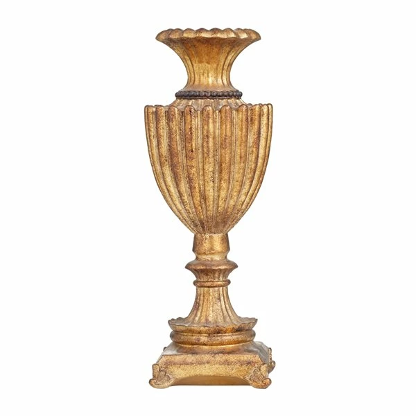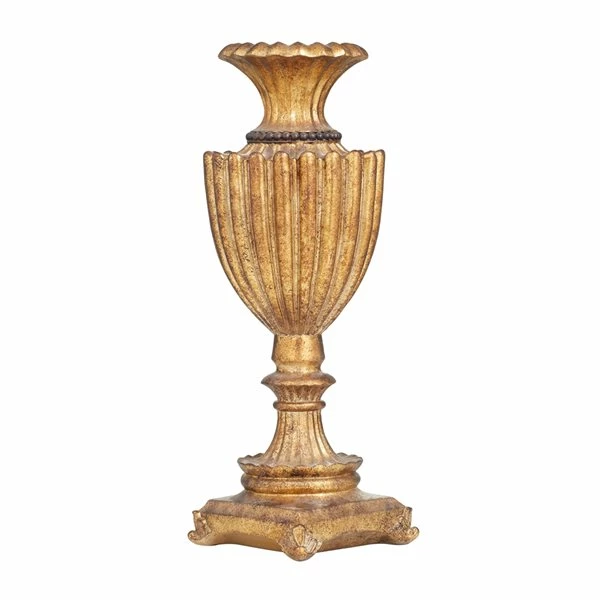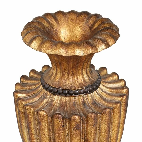 - This polystone vase comes in a distressed gold finish that adds a traditional appeal to your home