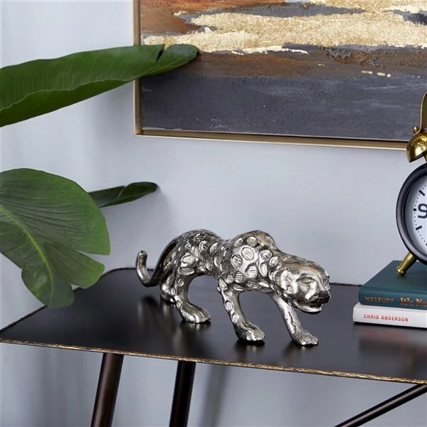 New 👏 Grayson Lane Leopard Contemporary Sculpture – Silver Aluminum – 5-in X 15-in ⌛