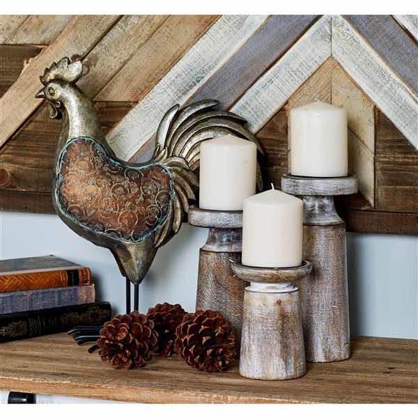 - This set of candle holders is made of mango wood and iron