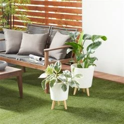 Cheap π― Grayson LaneΒ 15-in W xΒ 26-in H Modern White/Black Metal Round Planters – Set of 3 π