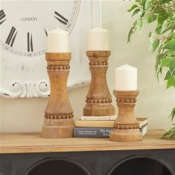 New π― Grayson Lane 1 Candle Brown Wood Pillar Candle Holder – Set of 3 π