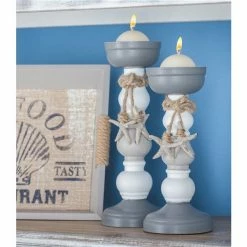 New β¨ Grayson Lane 2 Candle Grey Wood Pillar Coastal Candle Holder – Set of 2 π