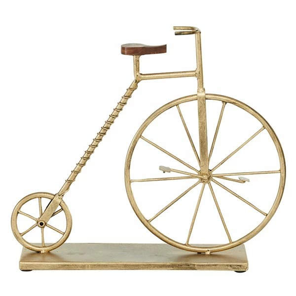 - Vintage bicycle with metallic gold powder-coated finish with warm golden-brown wood seat