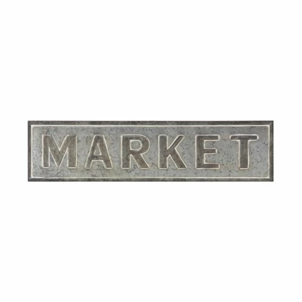 - Spells out “Market” in wide capital letters