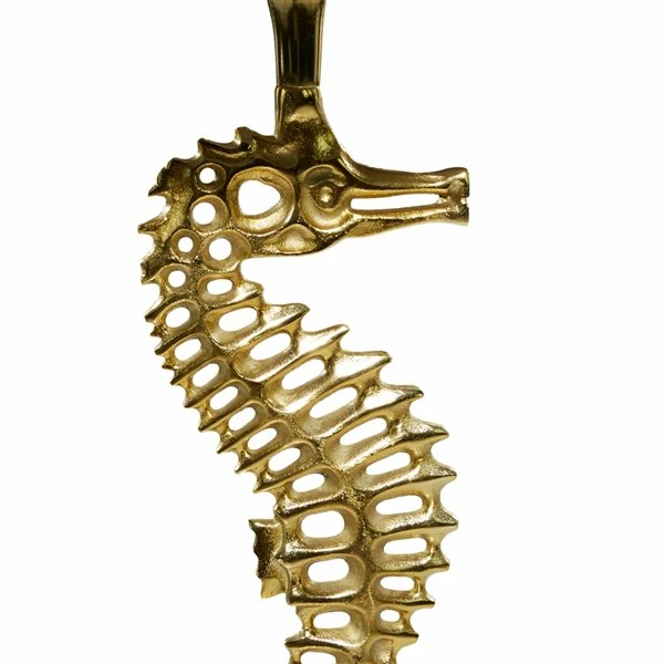 - This captivating large seahorse-inspired accent table is crafted in India and made of shiny aluminum along with solid marble