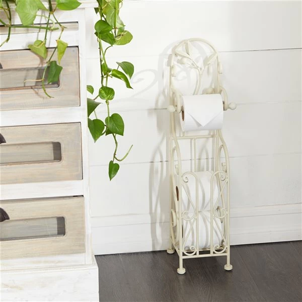- Standing toilet paper holder for bathroom storage with curved lines and plant designs