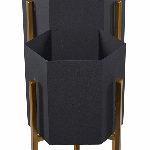 Promo ๐ Grayson Laneย 11-in W xย 25-in H Contemporary Gold/Black Metal Round Planters – Set of 2 ๐