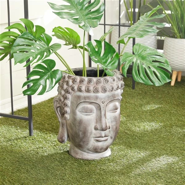 - This Buddha planter for home comes in a black interior and dark grey exterior