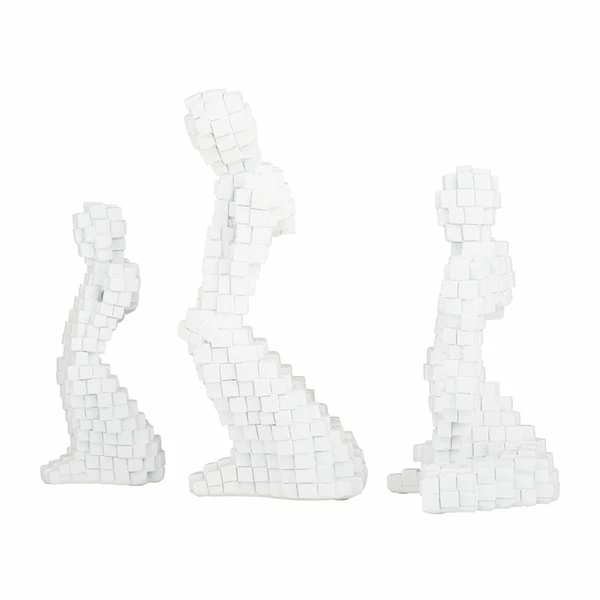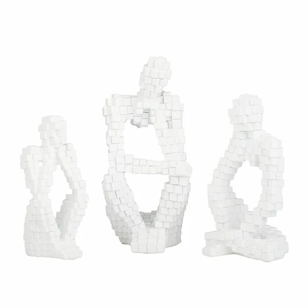 - A set of 3 sculptures carries a medley of abstract and geometric design with cube stacked structure in ‘the thinker’ inspired position