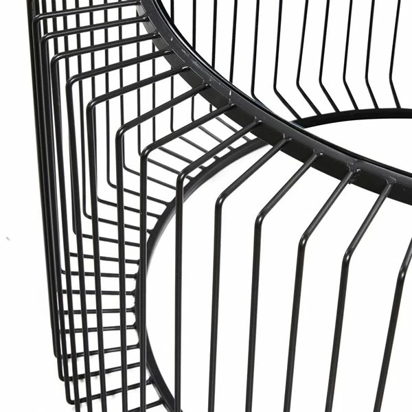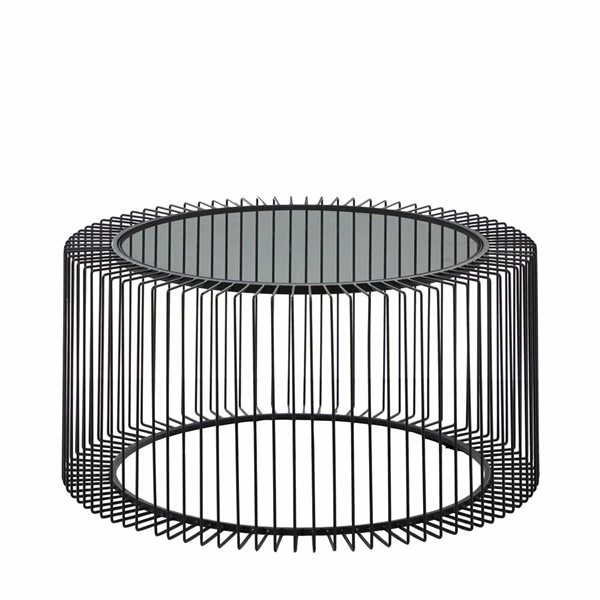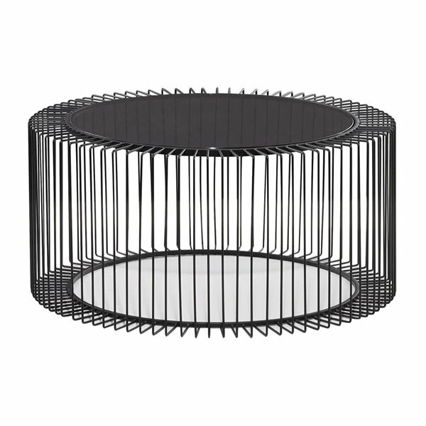 - This round contemporary coffee table features a round clear glass top and black metal frame with an open design