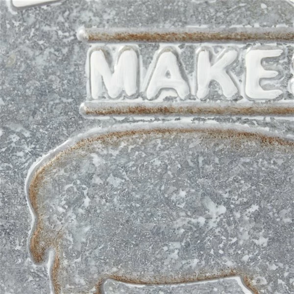 - Matte silver finish with white lettering