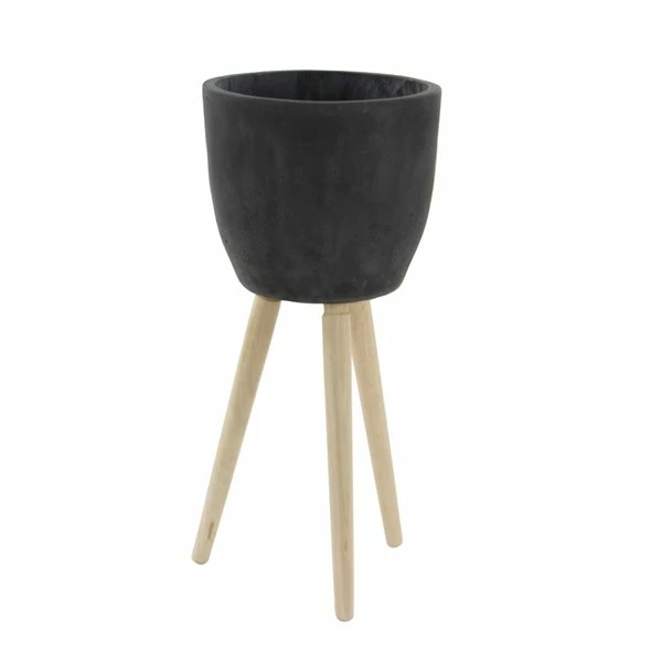 - Solid fibre clay plant pot on light-coloured wood tripod base