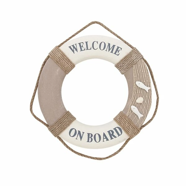 - Designed with fish and seashell illustrations, a fishing net and brown rope wrapped around