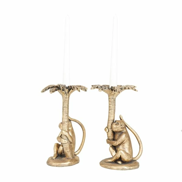These unique candle holders feature a pair of monkeys facing each other and hugging a palm tree.