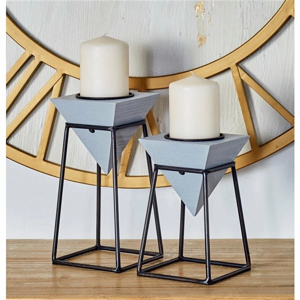 - Use this decorative candle holder set to add modern style to your end table, desk, or mantel. Modern style inspired with a minimalist design