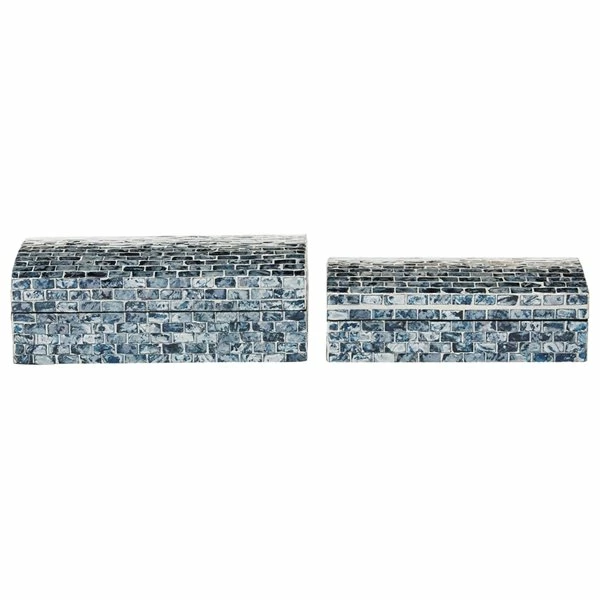 - This coastal style inspired design blue shell and mother-of-pearl lacquer box feature a unique brick-shaped pattern on the surface