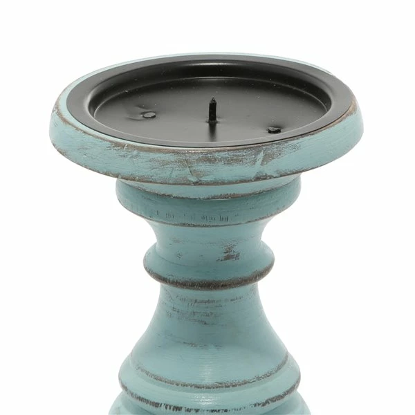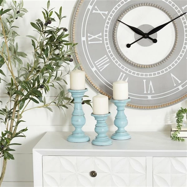 Promo ๐ Grayson Lane 3-Candle Pillar Holder – 6-in, 8-in, 10-in -Light Blue Mango Wood ๐