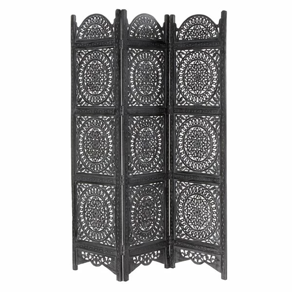 - This 3-fold room divider screen features a cut-out design for a refined appearance