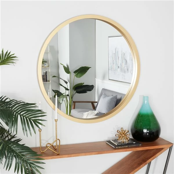 - This reflective and gold round wall mirror is made of solid wooden frame and glass materials