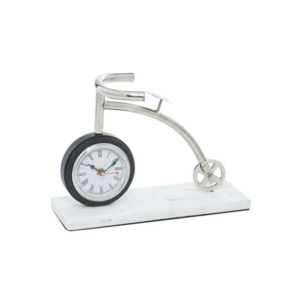 - This table clock is crafted from durable aluminum and marble