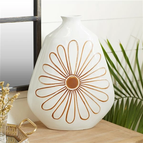 Promo ๐ฏ Grayson Lane Coastal Style Vase – White Ceramic – 12-in X 18-in โ