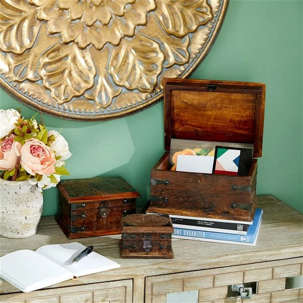 Promo ✔️ Grayson Lane Set of 3 11-in 8-in 5-in Brown Rustic Box – Recycled Wood 😉