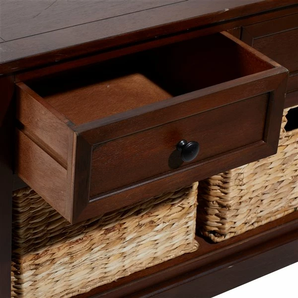 - Made of sturdy wood with elegant wicker drawers
