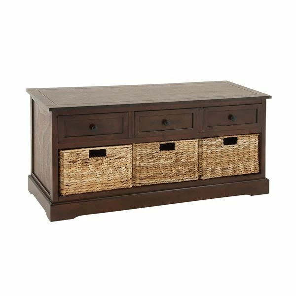 - Add this wood and wicker storage bench to your traditional-style entryway or den