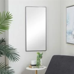 Coupon π Grayson Lane 30-in x 14-in Rectangle Black Contemporary Framed Wall Mirror π
