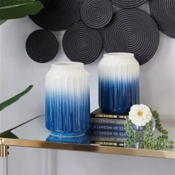 Best Sale 😍 GRAYSON LANE Set of 2 11 In., 9 In. Coastal Vase Blue Dolomite ❤️