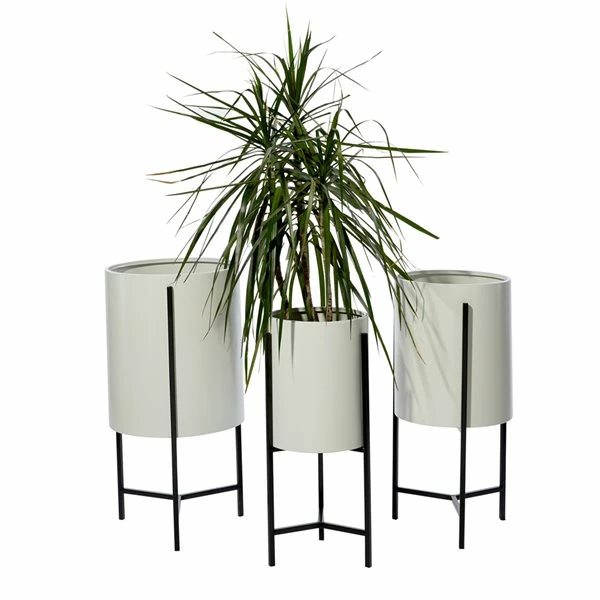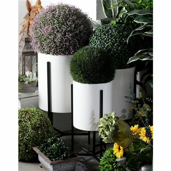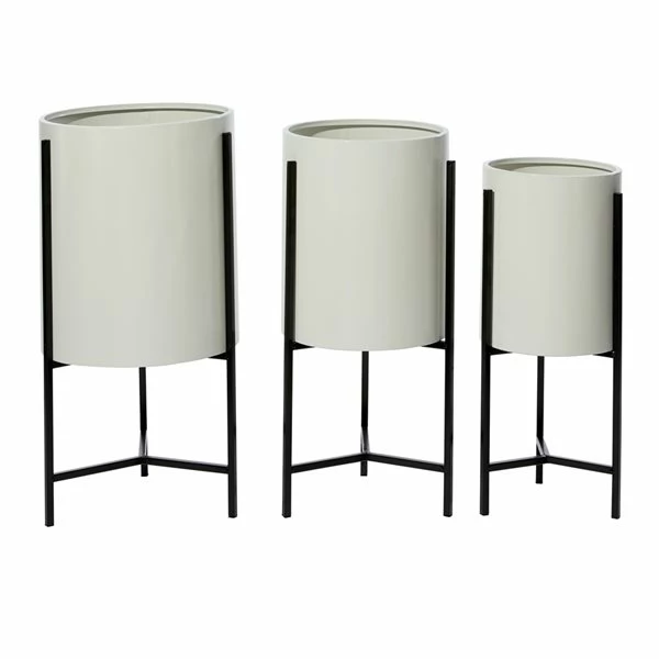 Top 10 👏 Grayson Lane 15-in W x 27-in H Modern Glossy Cream Metal Round Planters with Black Stands – Set of 3 💯