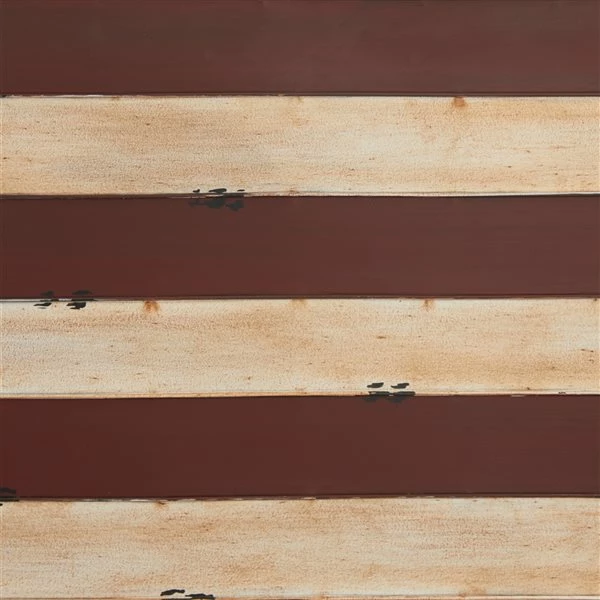 - Features rectangular-shaped frame with horizontal pattern along with distressed red, blue, and white finishes