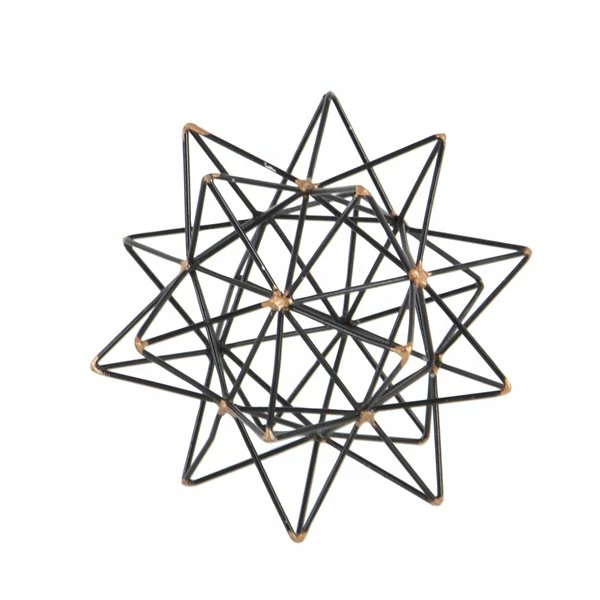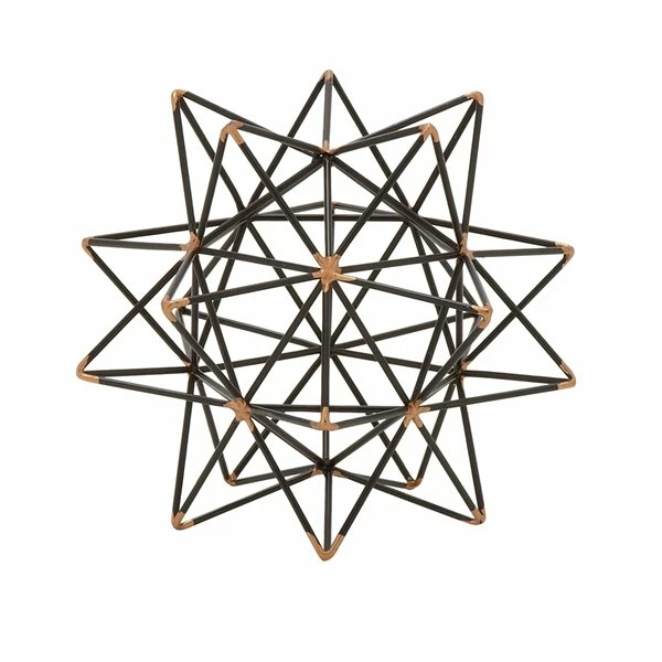 - A stylish wire star shaped orb decor that features a black fused iron bar framing with metallic gold accent finish along the edges