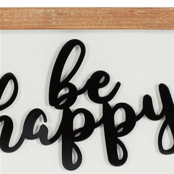 - Cursive black letters stand out from the wood’s natural brown finish