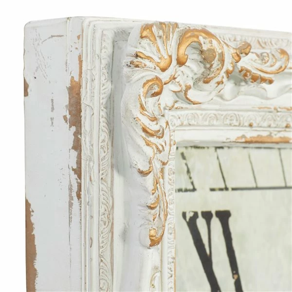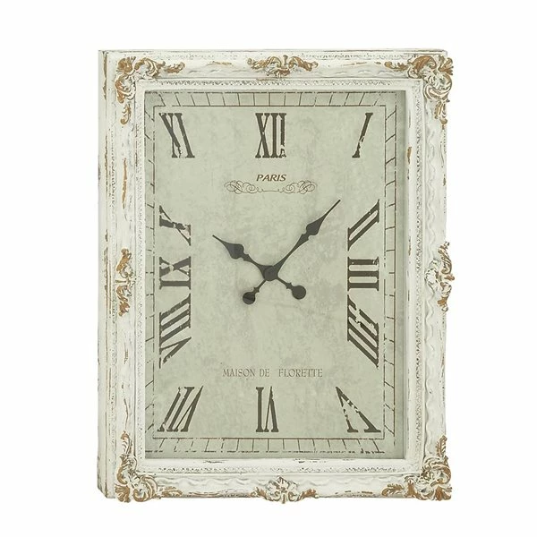 - This vintage wall clock showcases a distressed white and light brown wooden finish
