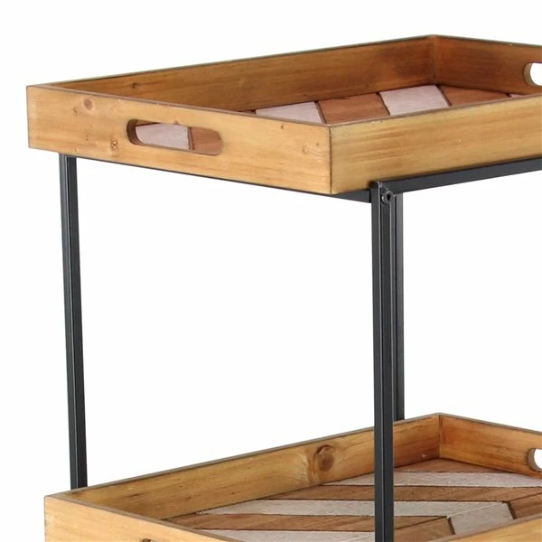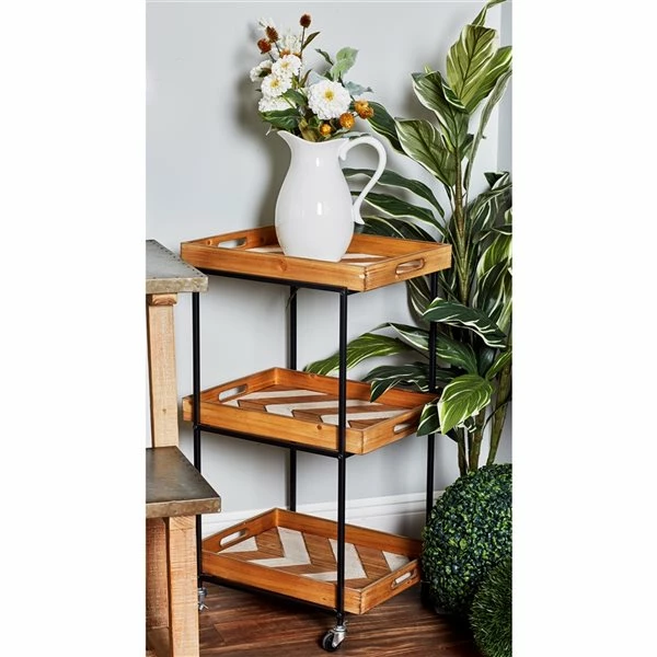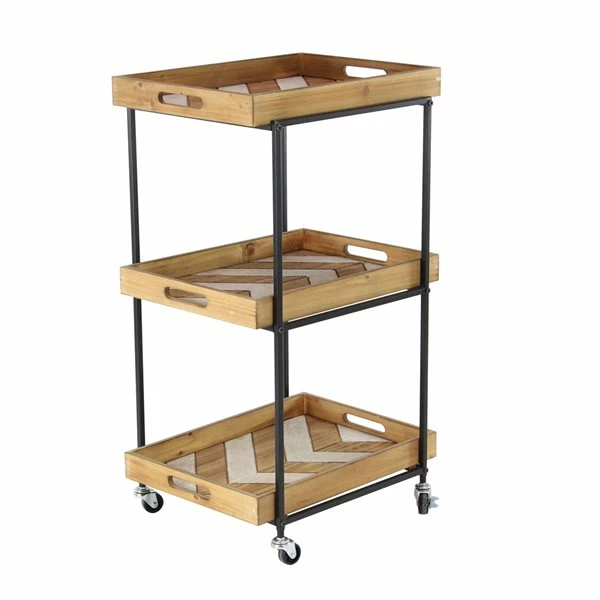 - Sturdy metal frame with 3 rectangular trays and 4 caster wheels